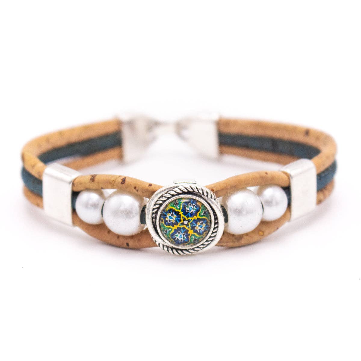 Add a touch of earthy elegance to your look with this Cork Handmade Bracelet, crafted with care and creativity. Featuring intricate printed resin beads, silver sliders, and two beautifully set stones, this accessory brings a pop of color and texture to any outfit – all while staying true to your eco-conscious values.
